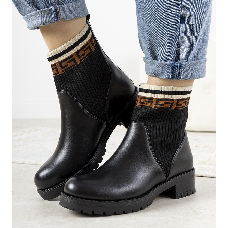 Black ankle boots with a sock upper Tamez are a great choice for every fashionable woman who wants to combine comfort with modern style. This model is distinguished by a minimalist design that fits perfectly into current trends. The upper made of ecological leather has a sock-like shape, which ensures a perfect fit to the foot and comfort of wearing.