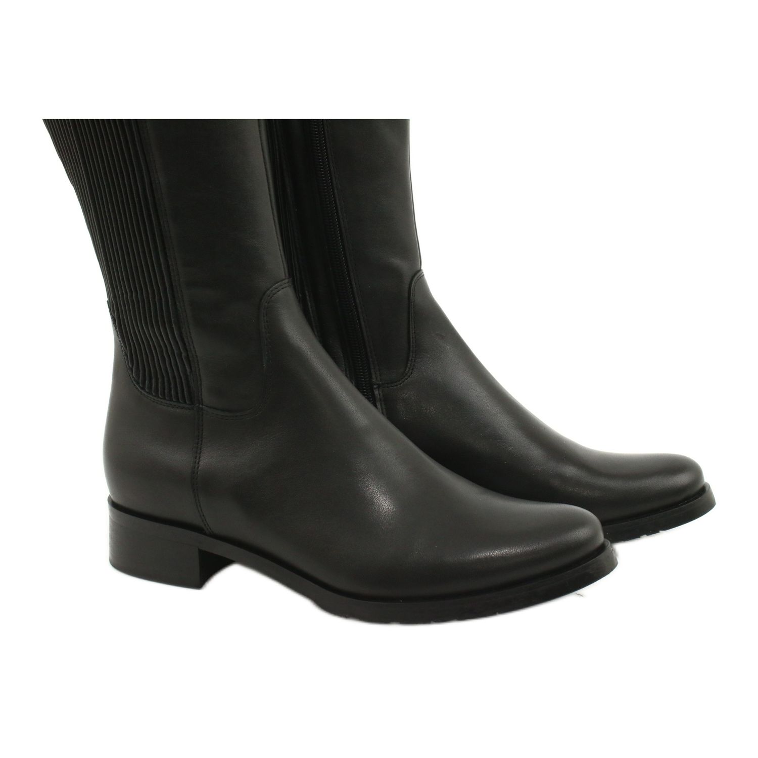 The distinguishing feature of these boots is the flexible, wide leather insert that adapts to the width of the leg, guaranteeing a perfect fit. The height of the upper of approximately 40 cm means that the boots effectively cover the calf, and the low heel of 3.2 cm ensures comfort of wearing all day long.