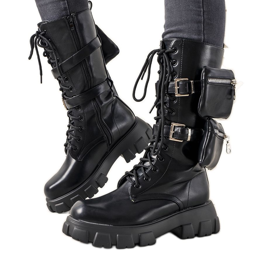 Black Apolline ankle boots with pouches are a must-have for every fashionable woman this fall! Made of high-quality eco-leather, these ankle boots combine original design and functionality. Decorated with two practical straps with pouches, they are an ideal way to store small items, making them not only a stylish but also a practical choice.