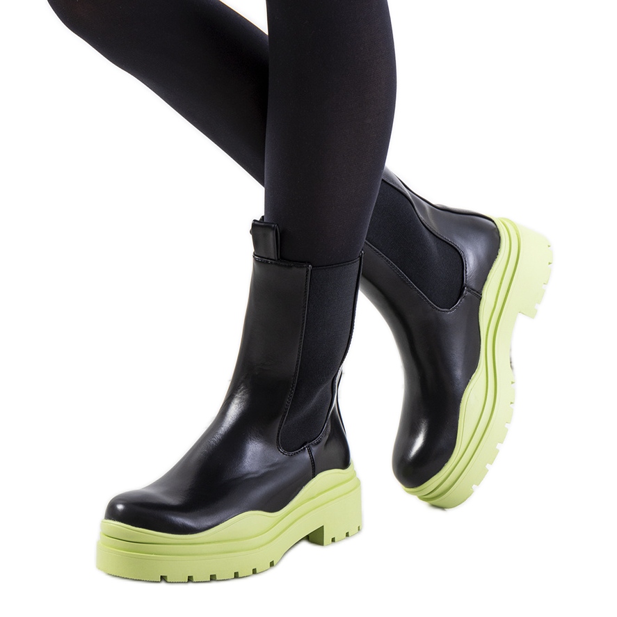 Modern, bold and extremely comfortable - Nester boots are one of the hot trends of the season. The black upper made of ecological leather contrasts with a distinct green sole with a wavy combination, which gives the shoes character and makes them stand out from the classic models.