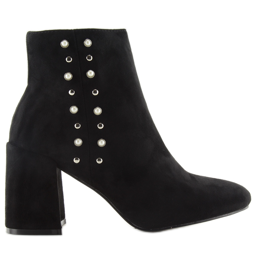 The boots stand out not only for their cut, but also for their beautiful details. Delicate pearls and silver studs have been placed on the side, which give the shoes a unique shine and make them ideal for evening outings and special occasions. Made of eco suede, they provide not only a fashionable look, but also comfort of wearing thanks to the foam lining.