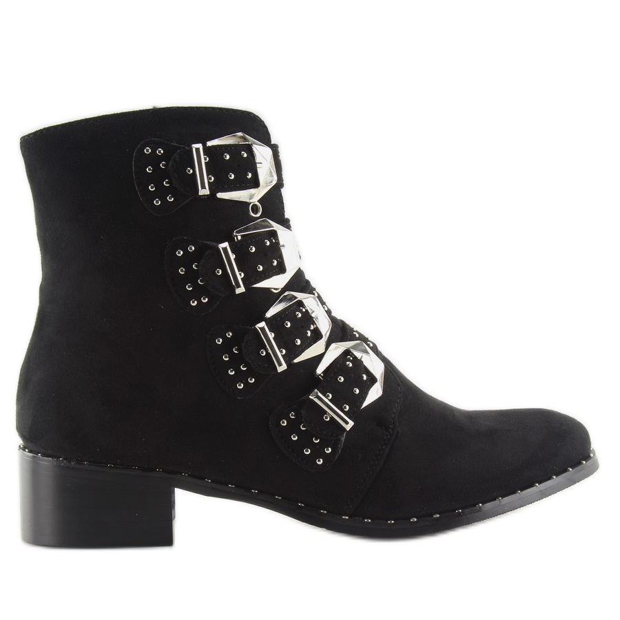 Introducing the unique 9276 black studded ankle boots, perfect for any fashionable woman looking to add a touch of rock style to her wardrobe. These suede ankle boots for women feature subtly placed silver studs and straps with shiny buckles that catch the eye and add character.
