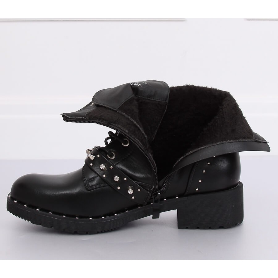 Black NC830 Black studded ankle boots are an incredibly stylish choice for women who value a rock look in everyday styling. These workers stand out with a unique design that attracts attention - buckle straps give the shoes a distinctive, bold look, and numerous studs and stones add an edge.