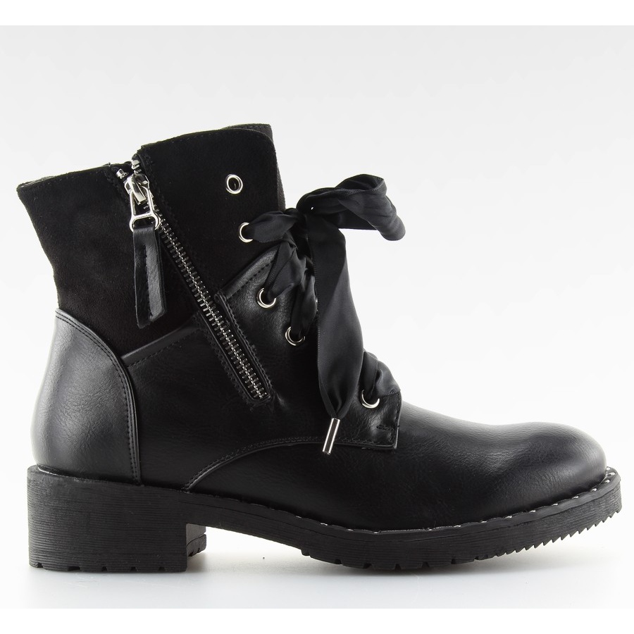 We present black worker boots model te1720-23 black - the perfect choice for women who value style and comfort. These elegant military-style boots are distinguished by a unique accent in the form of original ribbon laces that add character to the shoes. The set also includes a classic set of laces, so you can freely adjust them to your own preferences.