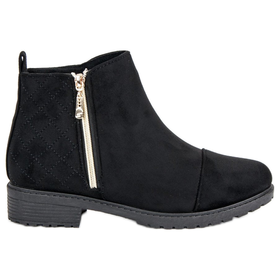 The zipper, placed on the side, ensures ease of buying and taking off the shoes, which is especially appreciated in everyday use. Black ankle boots stand out with their unusual style thanks to quilting and a gold zipper, thus combining femininity with modernity. The interior of the ankle boots provides comfort, and the flexible sole isolates well from uneven surfaces, which increases the comfort of wearing.