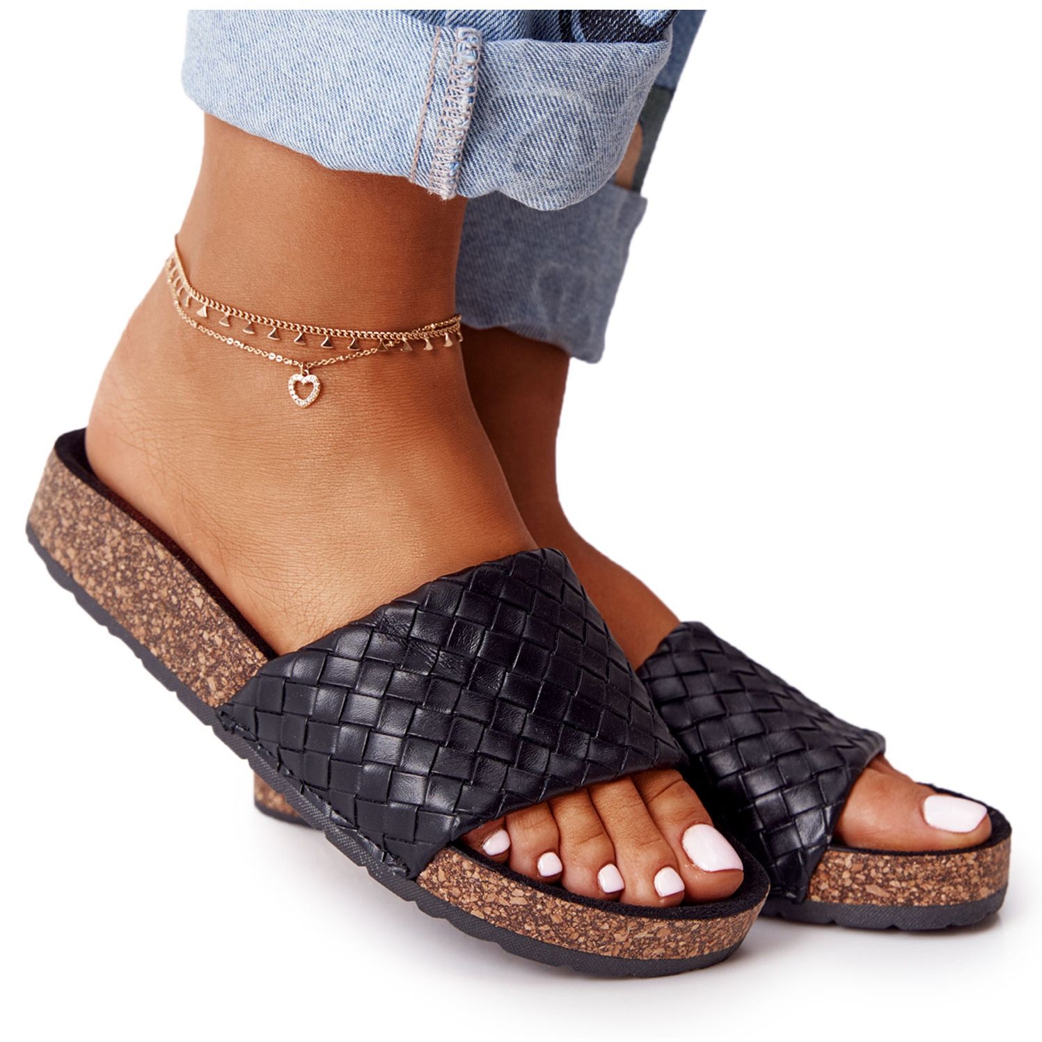 MSMG MSMG Black Catalina Leather Slippers On Cork Sole