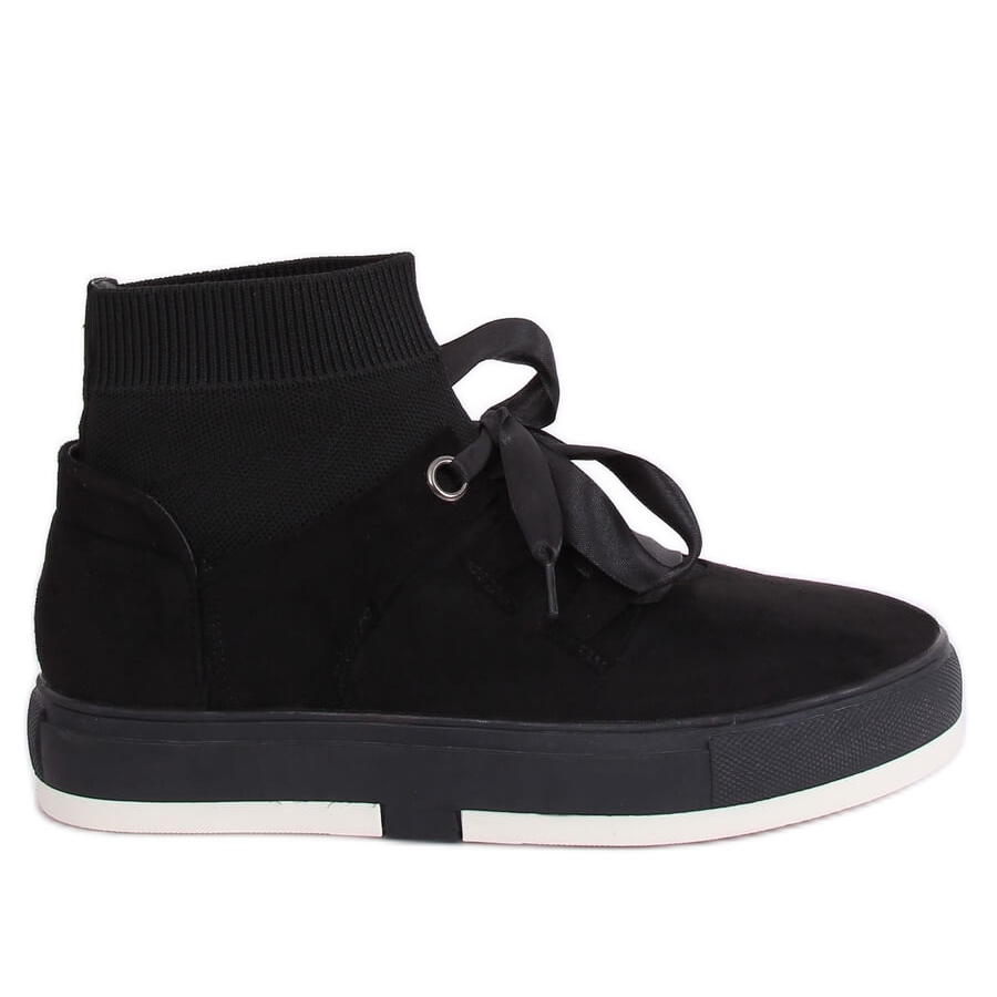 Black CH-95 Black ankle boots are a great choice for women who value style and comfort in everyday use. These unique high-soled sneakers combine modern design and practicality. Decorative lacing with a satin ribbon adds a unique character, and the fashionable sock upper fits perfectly to the foot, which ensures not only a great look, but also comfort of wearing.