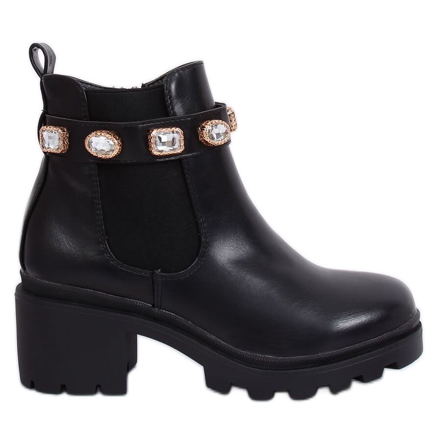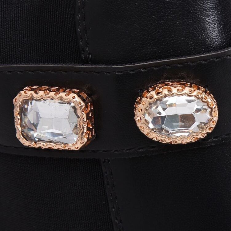 This model is distinguished by spectacular rhinestones in a gold setting, which add a unique character and make every styling shine. The elastic insert on the side and the zipper fastening are practical solutions that make it easier to put on the shoes, while ensuring a perfect fit.