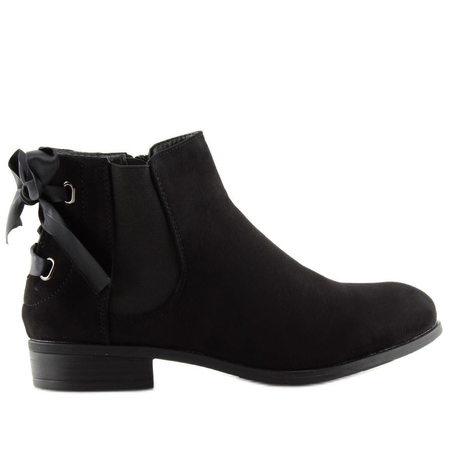 Here are the 3740 women's Chelsea boots in elegant black, which are the perfect combination of style and comfort. These unique ankle boots are distinguished by decorative lacing made of satin ribbon placed at the back of the upper, which gives them an original character. Made of ecological suede, they impress not only with their aesthetics, but also with their properties.
