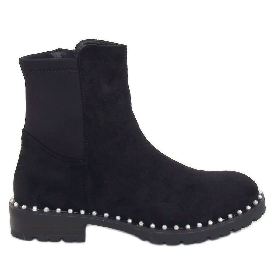 Discover the elegance and comfort offered by the RQ336 Black ankle boots with pearls. These suede women's ankle boots with a flat heel perfectly combine a classic design with a modern accent, thanks to the charming pearl applications. The convenient zipper fastening placed on the side of the upper makes them a real pleasure to put on and take off.