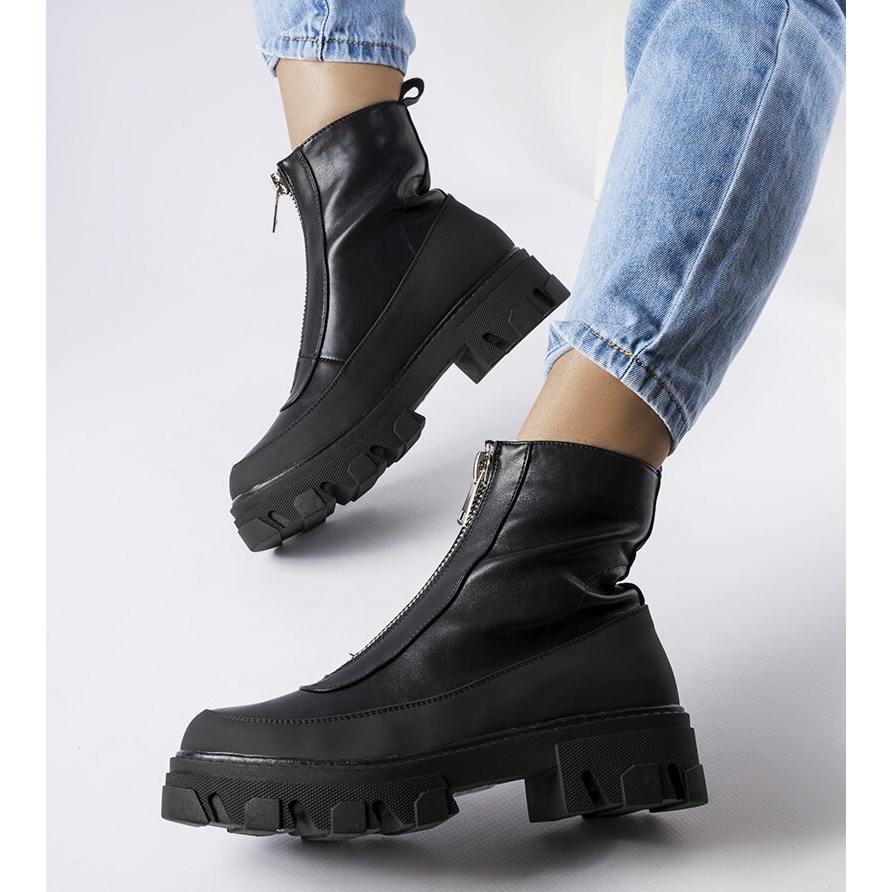 Black massive ankle boots with a Morley zipper - stylish and practical footwear for the modern woman