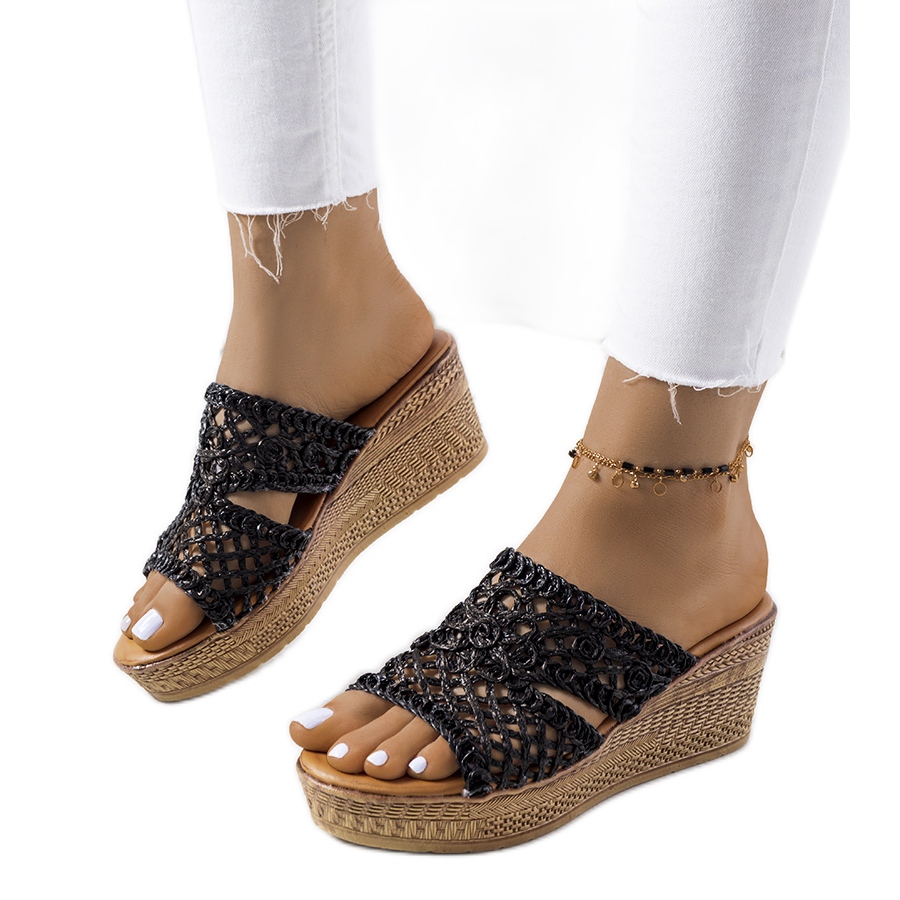Discover the extraordinary comfort and style offered by the black Clara wedge sandals, the perfect choice for every modern woman. Made of high-quality eco-leather, these sandals not only look extremely elegant, but also provide exceptional comfort when worn every day. The SYT-15 model is characterized by an openwork construction that allows for free air circulation, making your feet sweat-free even on warmer days.