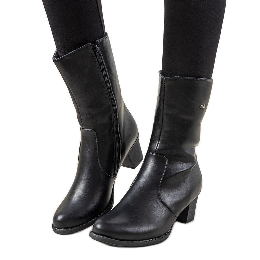 Discover classic style and elegance with the Preciado block heel boots. These black boots are the perfect complement to both everyday and more formal styles. Made of high-quality eco-leather, they provide exceptional comfort, and their fitted upper beautifully highlights the silhouette, emphasizing the legs.