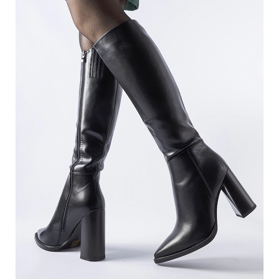 Elegant, timeless knee boots in black, perfect for cooler days. Spitza nose and a stable heel type (10 cm) combine style and comfort, and the side lock makes it easier to put on quickly and accurately fit to the foot. Warming provides thermal comfort, thanks to which the model will work both on a daily basis and during evening outings.