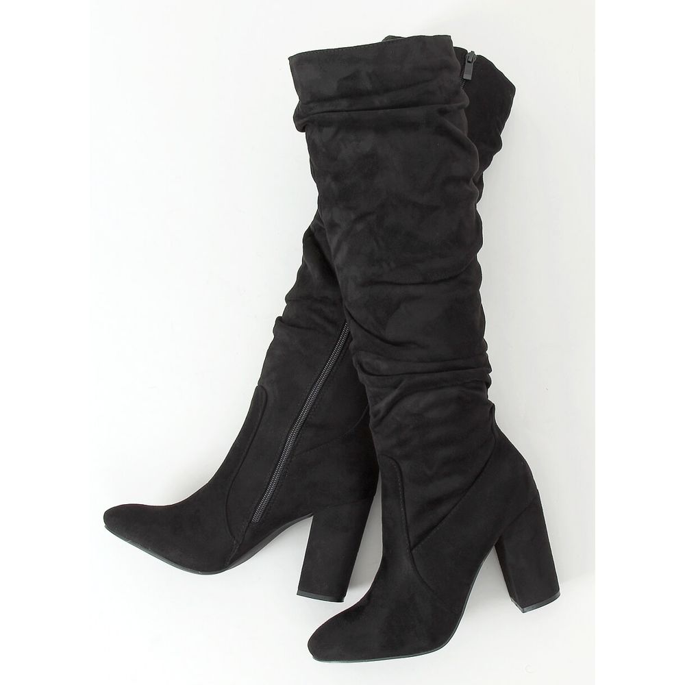 Classic black heeled boots W18005 Black are the perfect choice for women who value elegance and everyday style. Made of high-quality ecological suede, these boots not only look exceptional, but also care for the environment. The fashionably ruffled upper attracts attention, giving the whole a unique character.