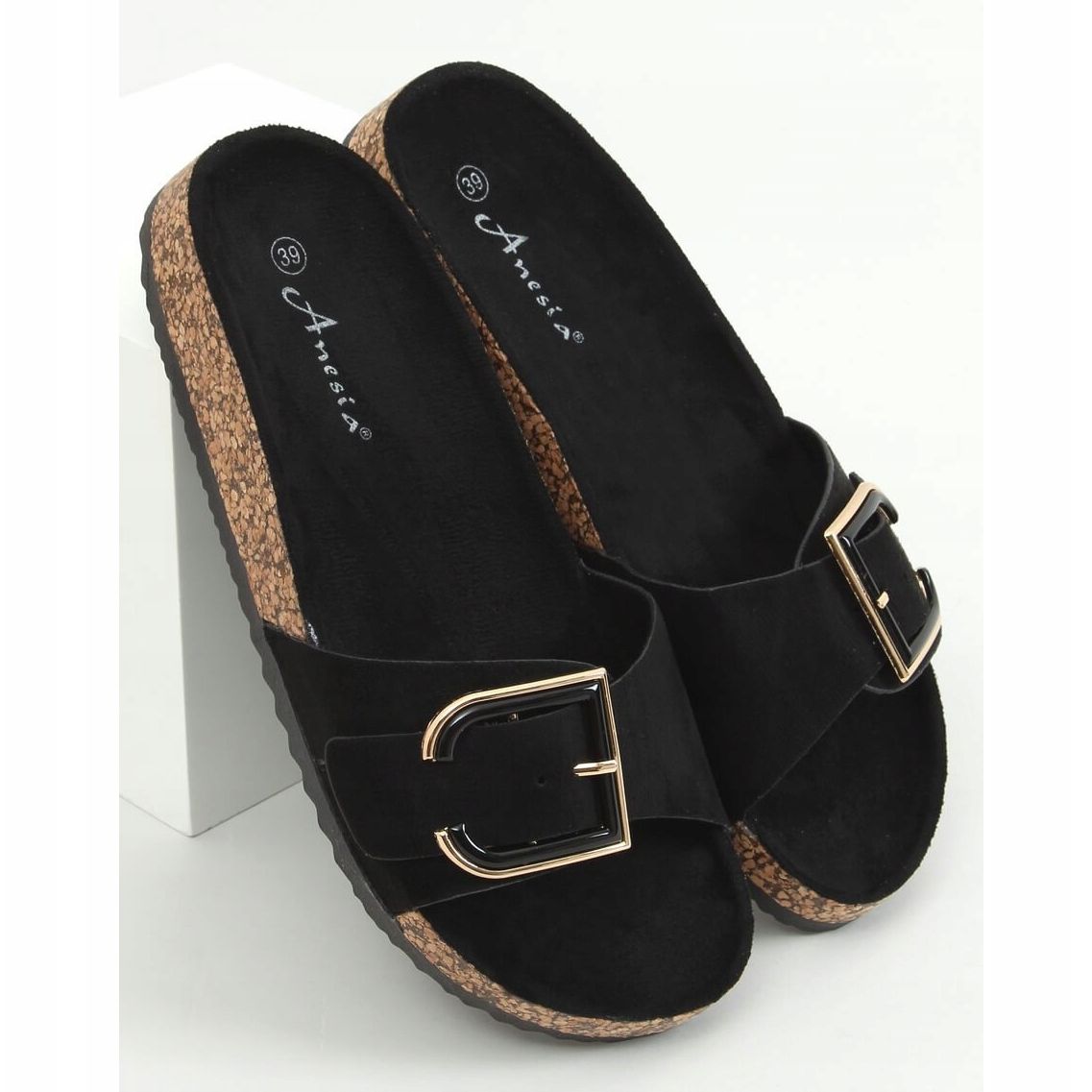 Inna marka Black cork slippers N-111 Black