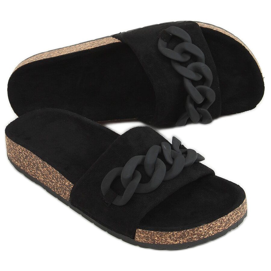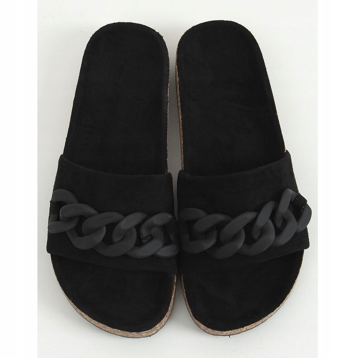 Cork slippers with chain black DZ907 Black are the perfect choice for summer days! These stylish women's slippers combine comfort and modern design, making them a great addition to any everyday style. This model is characterized by a wide strap that provides stability and a profiled inner sole, guaranteeing comfort even during long wear.