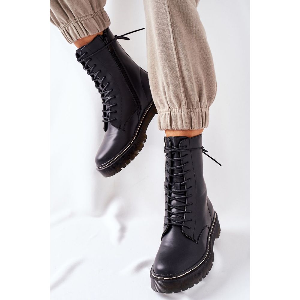 We present women's S.Barski worker boots in black, which perfectly fit into a stronger style and will provide you with not only a fashionable look, but also comfort during autumn and winter walks. Made of high-quality ecological leather, these boots are characterized by a stiff upper and a massive, synthetic sole, which ensures not only durability, but also resistance to dirt.