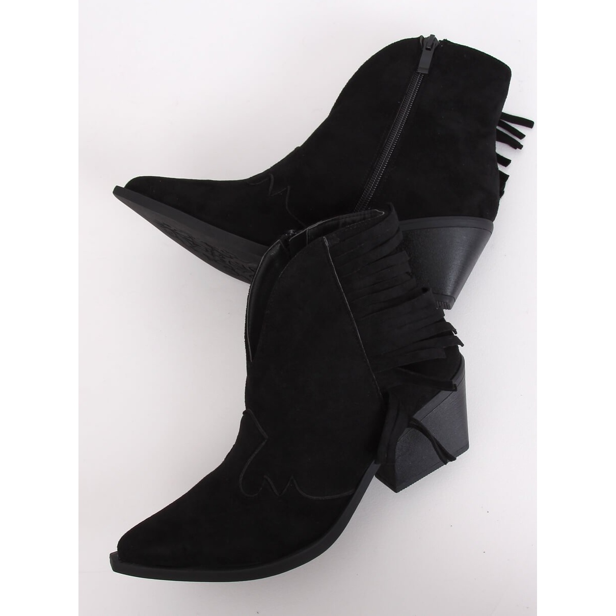 Discover the unique black NC999 Black women's cowboy boots, which will become an inseparable element of your spring wardrobe! These fashionable ankle boots with a wide 6.5 cm heel combine style and comfort, and their unique design with graceful toes, a front cutout and fringes will definitely attract attention.