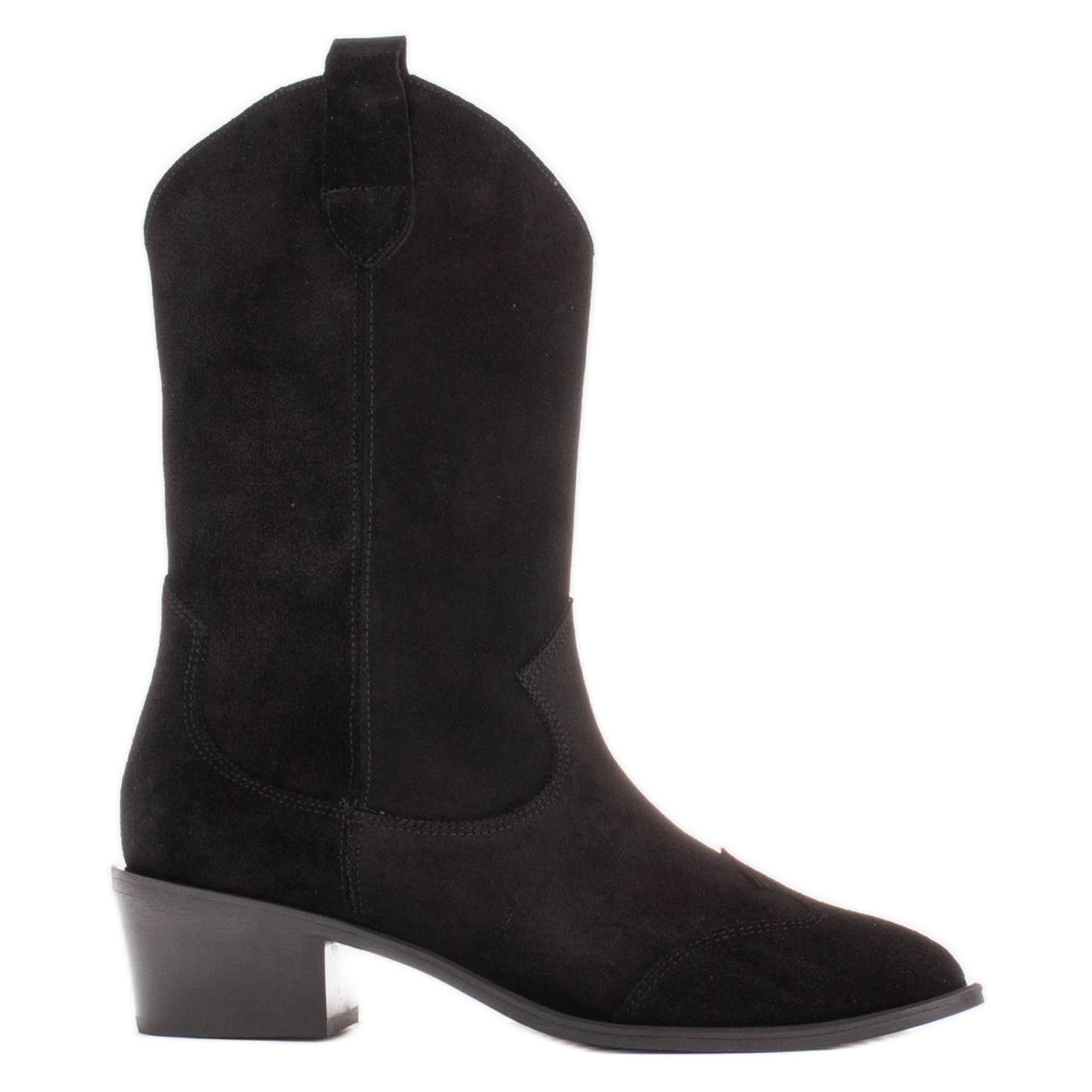 Details: Marco Shoes Black cowboy boots made of natural suede
