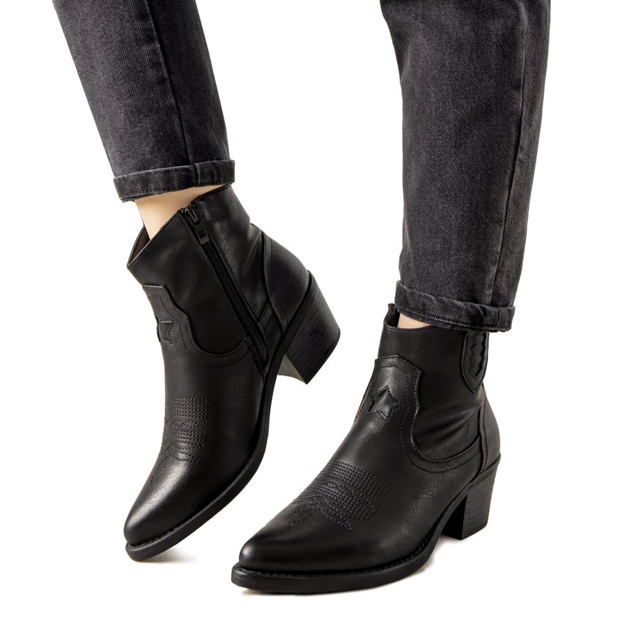 Discover a new dimension of style with black Mustgrow cowboy boots, which perfectly fit into current fashion trends! These elegant ankle boots are a great choice for autumn and winter days, combining comfort with an original design. Made of high-quality ecological leather, they provide durability and aesthetics, and their original embroidered pattern attracts attention and adds character to any styling.