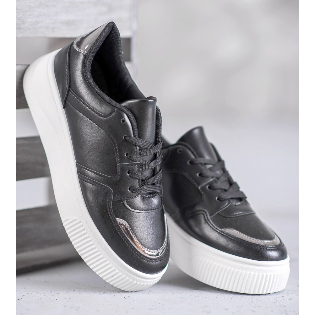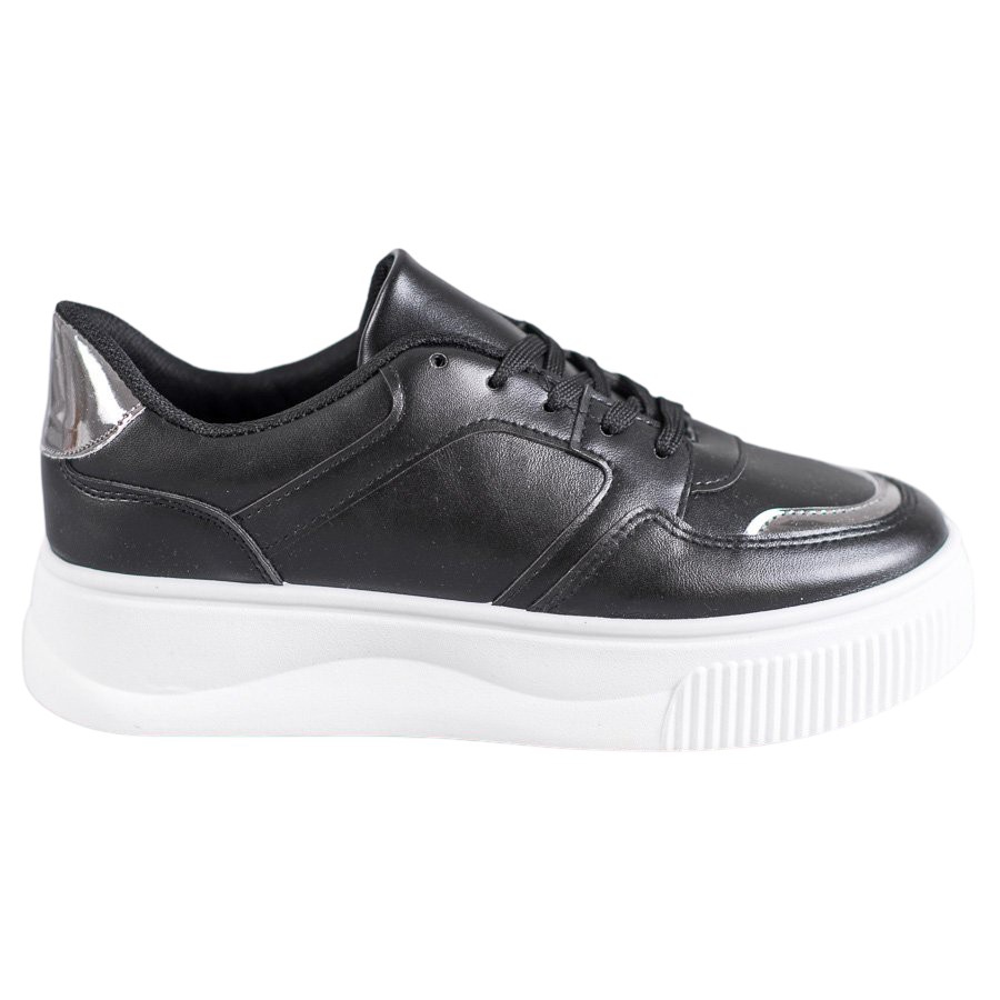 Black SHELOVET creepers are a great choice for every modern woman who wants to combine style with comfort. These fashionable shoes, distinguished by a 4-centimeter, white platform, add not only height but also character to any styling. Decorative inserts in silver attract attention, giving classic black a unique shine.