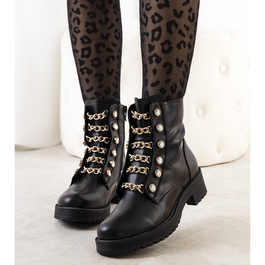 Discover the latest model of Curiel trapeze boots from the PA1 brand – the perfect choice for every fashionable woman! These elegant, black ankle boots combine style and comfort, making them an indispensable element of your autumn wardrobe. A gold chain imitating laces and subtle zircons give them a unique character that will certainly attract attention.