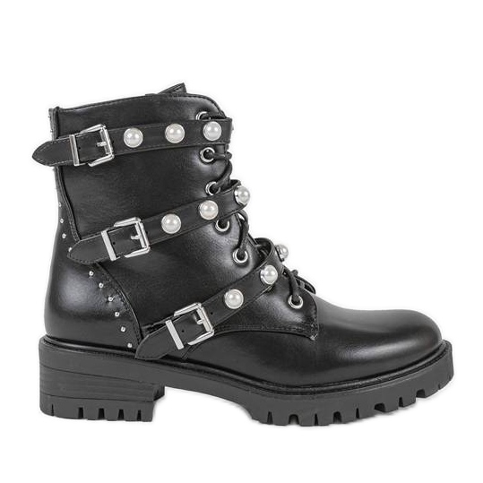 Black decorated Gama workers are the perfect choice for the upcoming fall! These stylish ankle boots made of high-quality eco-leather not only impress with their appearance, but also provide warmth and comfort thanks to the internal insulation. The upper is decorated with spectacular straps decorated with rhinestones, which gives them a characteristic, fashionable accent.