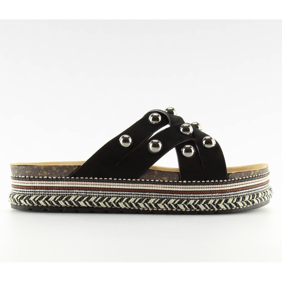 There is no need to worry about their durability - the outer material made of ecological suede leather provides not only an aesthetic appearance, but also resistance to everyday use. BV-418 black flip-flops are a must-have in every woman's wardrobe! The dominant pattern, rhinestones and lack of a toe make them ideal for summer, and their platform height of 4.0 cm adds a subtle elevation without sacrificing comfort.