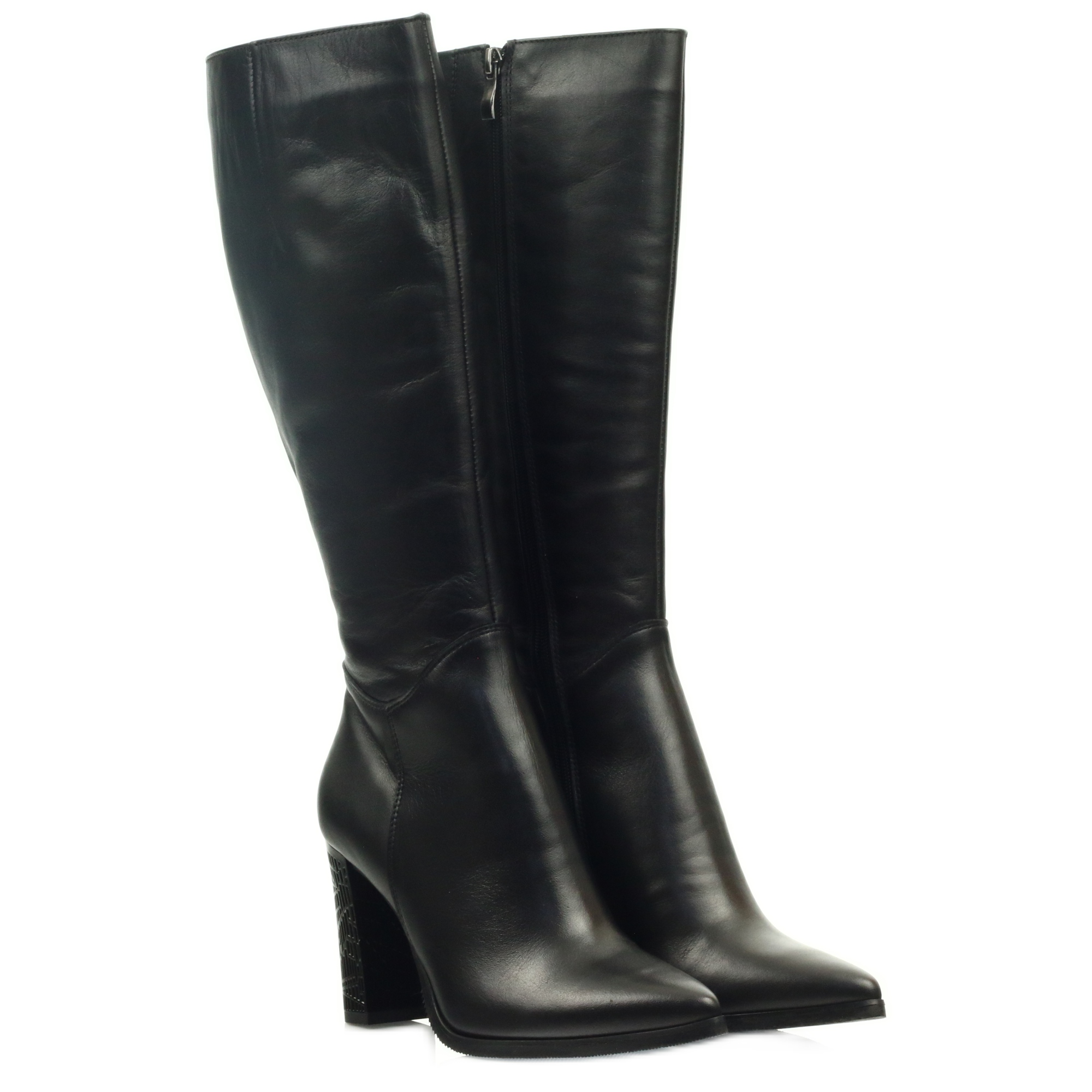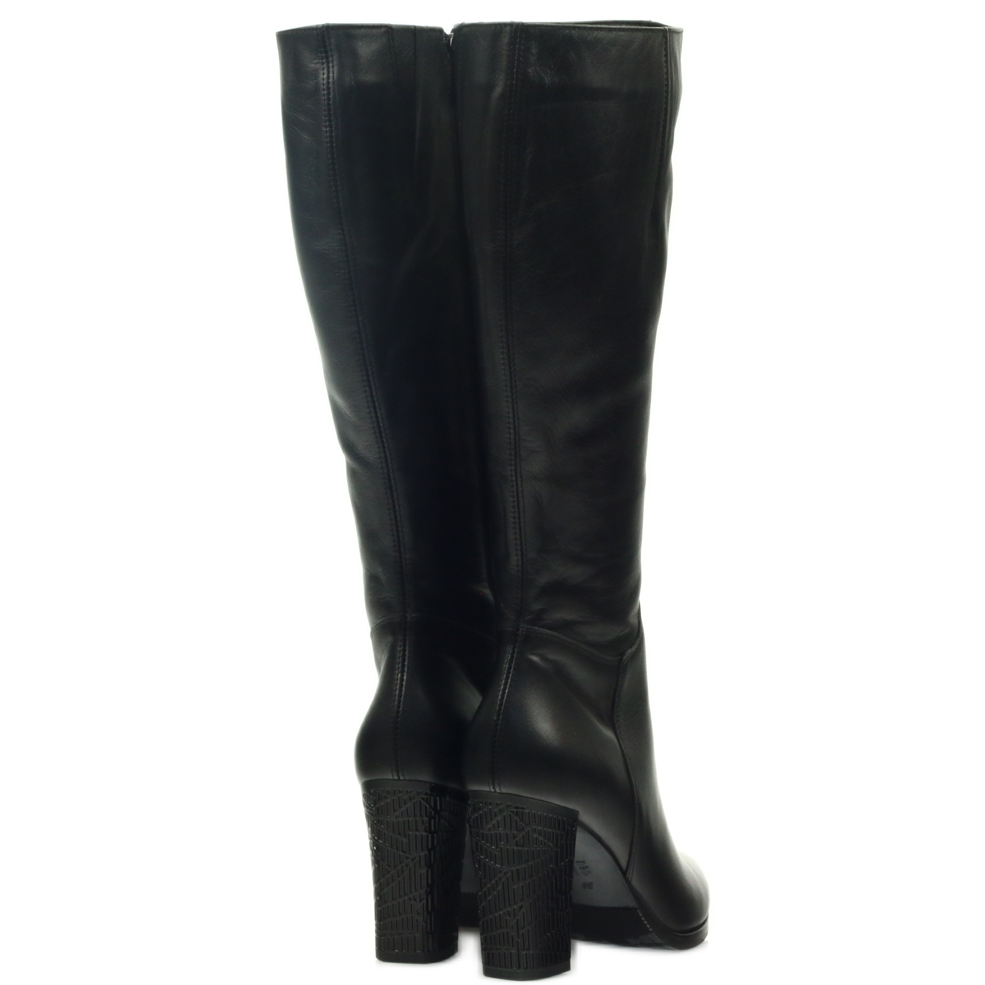 Black Espinto boots have a classic design, reaching to the knee, which makes them a universal addition to various styles - from casual to more elegant. The decorated 8.5 cm high block heel is not only aesthetic, but above all stable and comfortable to use, which allows for long-term wear without feeling tired.