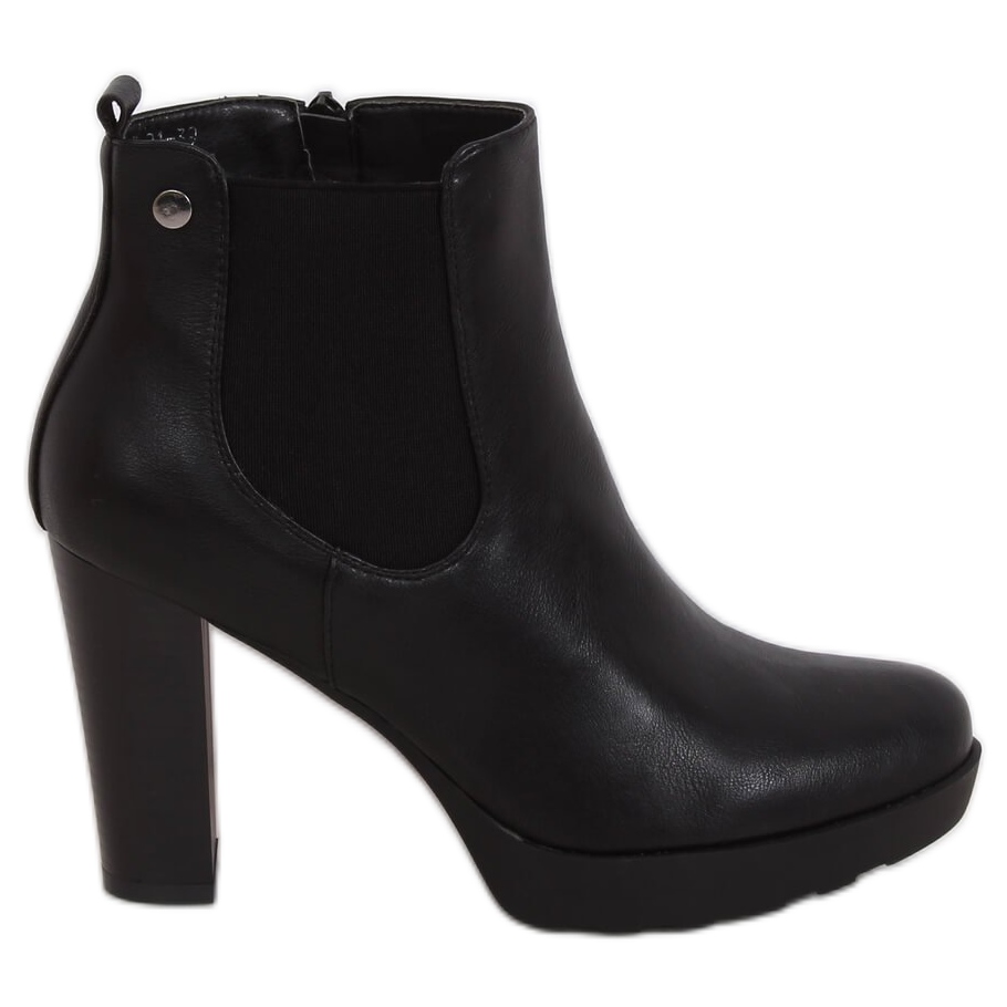 Discover elegance and self-confidence with the black F-21 Black ankle boots, which will introduce a unique style to your wardrobe. These smooth women's ankle boots with a slim 9 cm heel and a 2 cm platform combine comfort and a fashionable look. Their classic Chelsea boot style design with an elastic insert ensures not only comfort but also a perfect fit to the leg.
