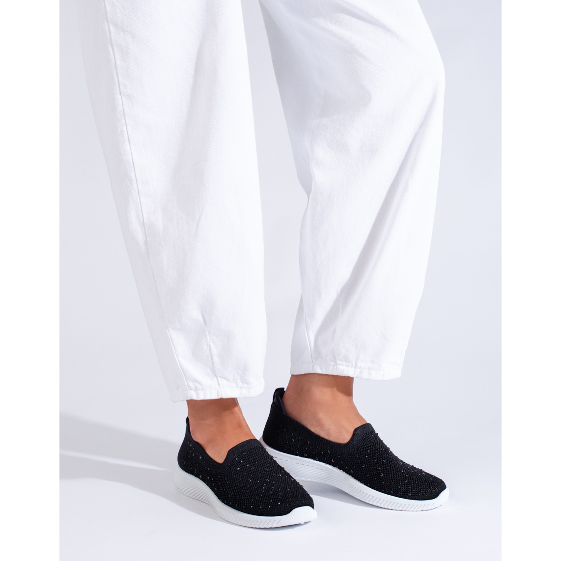 Here are black fabric slip-on shoes with studs from the well-known brand Shelovet, which perfectly fit into a sporty and casual style. Perfect for everyday use, these fashionable shoes will provide comfort and freedom of movement thanks to the built-in, soft heel counter and flexible upper material, which is made of 100% durable textile material.