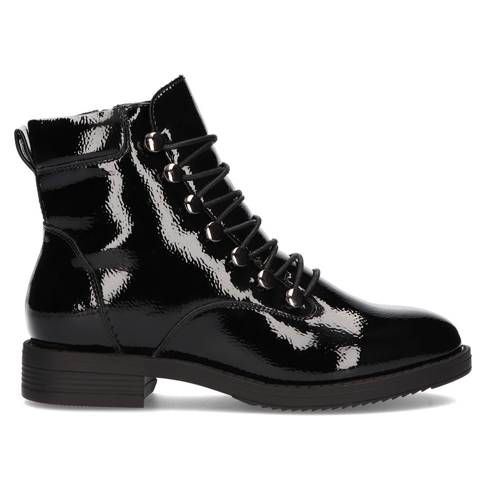 The zip fastening and lace-up details are practical elements that allow you to easily adapt the boots to your needs. The patent finish gives them an elegant touch, and the timeless black color suits both casual and more formal styles.