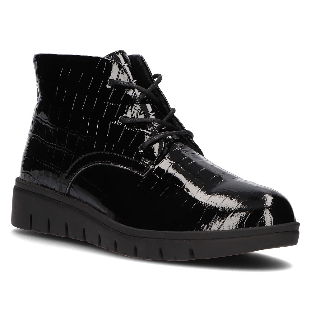 The boots are made of high-quality natural leather, which ensures not only durability but also comfort of wearing. The round toe and the 9.5 cm high upper look great on the leg, and the lace-up fastening allows for a free adjustment to the foot. Additionally, the insulation will make your feet feel comfortable even on colder days.