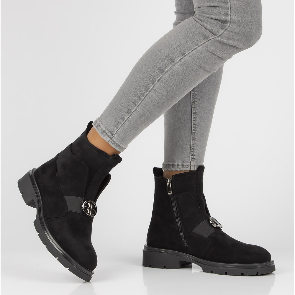 We present elegant Filippo DBT3330/21 Bk ankle boots in a classic black shade, which perfectly fit into the latest trends. Made of high-quality ecological suede leather, they look extremely stylish and are also environmentally friendly.