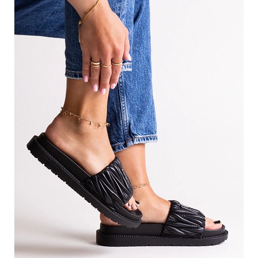Black flip-flops with a big star NN274A745 are a must-have for summer for every fashionable woman. These elegant and at the same time very comfortable flip -flops were designed for maximum wearing comfort during warm days. Made of high quality flexible rubber, they perfectly adapt to the shape of the foot, which makes them perfect for both the beach and daily walks around the city.