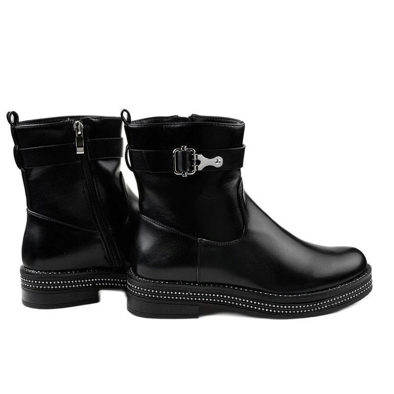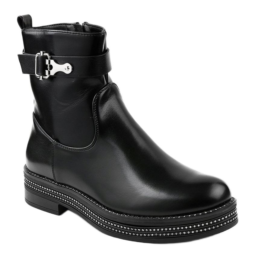 Black flat ankle boots with rhinestones C-68 are the perfect choice for women who value both style and comfort. Made of high-quality eco-leather, these ankle boots impress with their elegant, classic look and functionality. Their black color makes them a perfect match for a variety of styles, from casual to more formal.