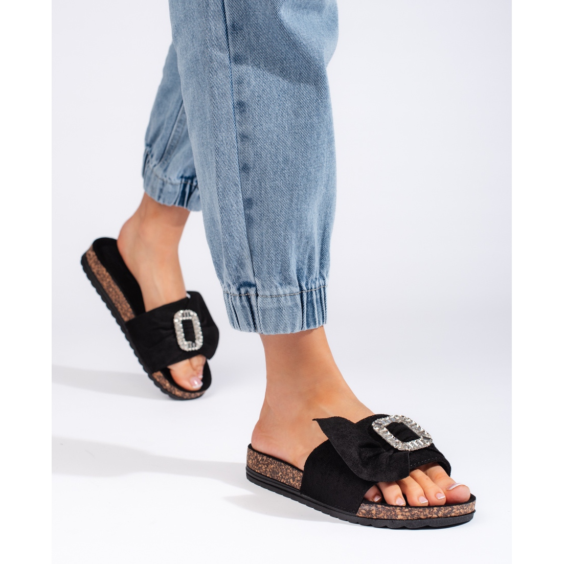 Made of high-quality, ecological suede leather, the flip-flops look exceptionally elegant, and their open toe and heel provide comfort and breathability on warmer days. The 3 cm flat heel makes every step light and pleasant. An additional advantage is the practical slip-on fastening, which makes it easy to put on and take off the shoes.