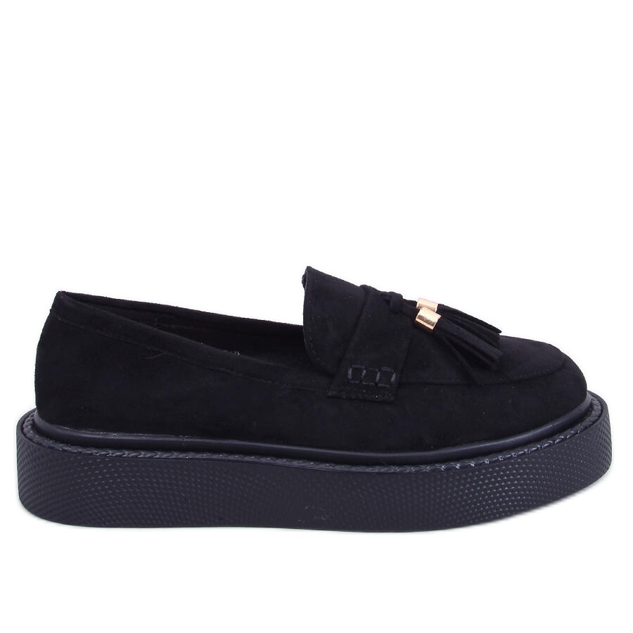 Discover the latest hit in the fashion world - black loafers on the fringed platform! These unique women's shoes are the quintessence of a modern style that allows you to freely combine elegance with comfort. Made of high quality ecological suede, they look extremely impressive, and their smooth surface goes perfectly with various stylizations.