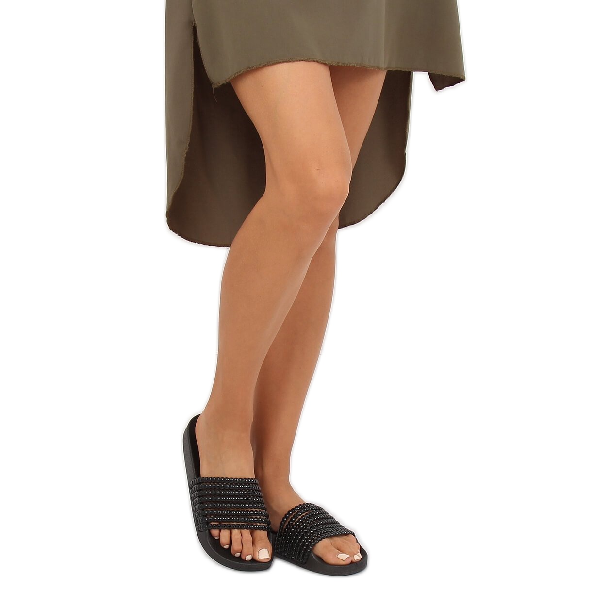 Inna marka Black G301 Black slippers with beads