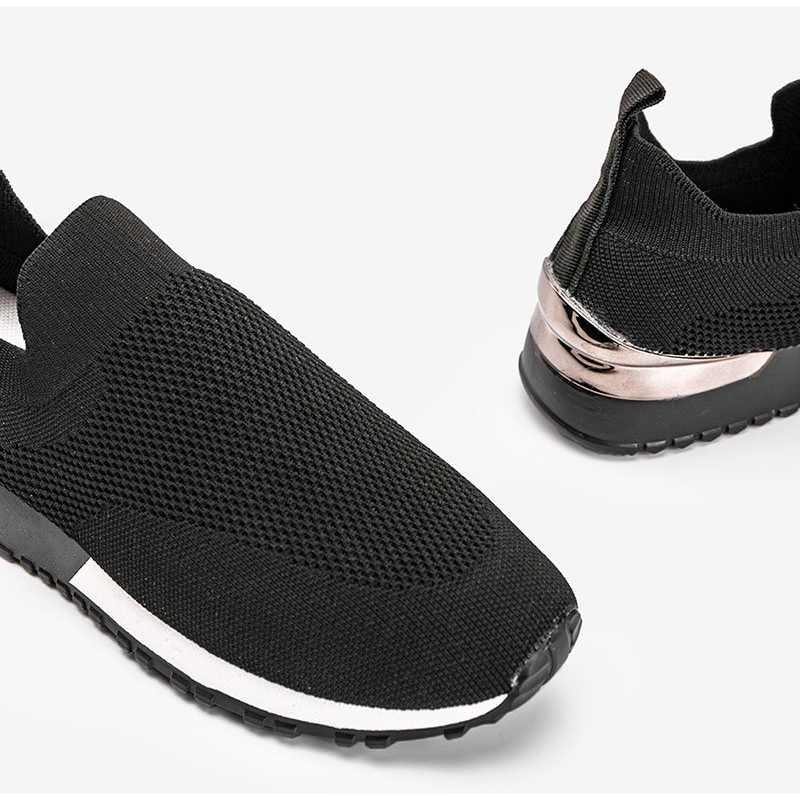 Black Sneakers Hazel is a universal model for active women who value comfort without compromise. The lightweight, airy upper made of flexible fabric perfectly adapts to the foot, and the thicker, rubber sole with a white finish ensures depreciation and stability during walks, running or training. Metallic details add a subtle character, thanks to which the shoes are great for both sports and casual stylizations.