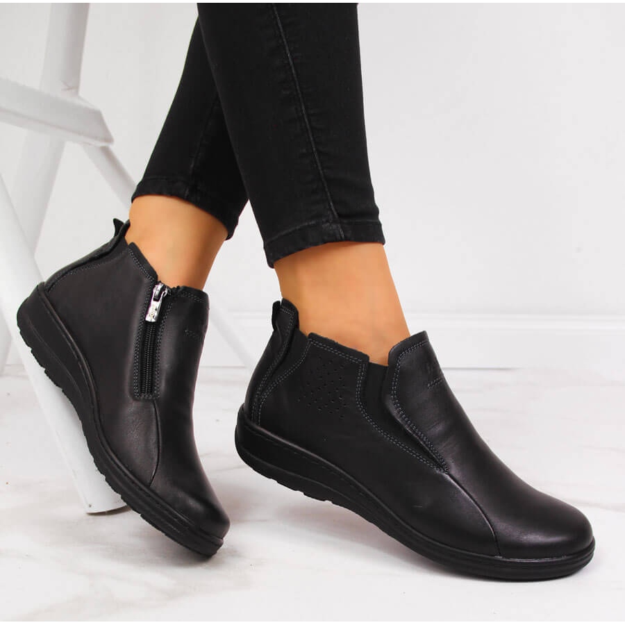 Helios 566 boots are a proposition for women who value high quality of workmanship and comfort of use. Made of natural leather, they guarantee breathability and durability. Black, elegant and universal, they will match many styles, both casual and more elegant. The matte finish gives them a timeless character.