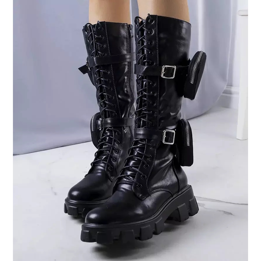 Nererin high boots feature an elegant detail in the form of a strap decorated with a chain, which adds character to them. Laced at the front and fastened with a zipper on the side, they ensure easy putting on and adjusting to the foot. Made of high-quality eco-leather, they are not only fashionable, but also practical - easy to care for and resistant to damage.