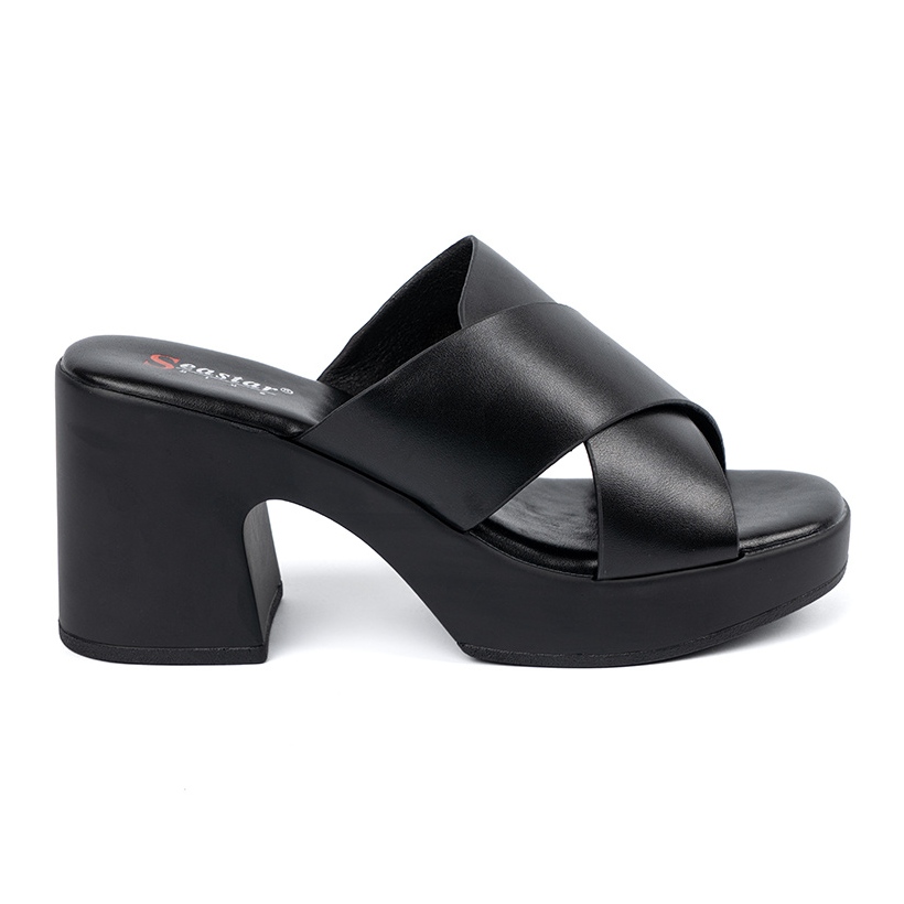 Black Seastar flip flops are the perfect combination of elegance and comfort that meet the expectations of modern women. Created for daily use, these flip flops on a 8 cm high post are a great choice for summer days and various occasions. Their open heel and a sliding design make them pure pleasure, and you get not only a stylish appearance, but also the comfort of wearing.