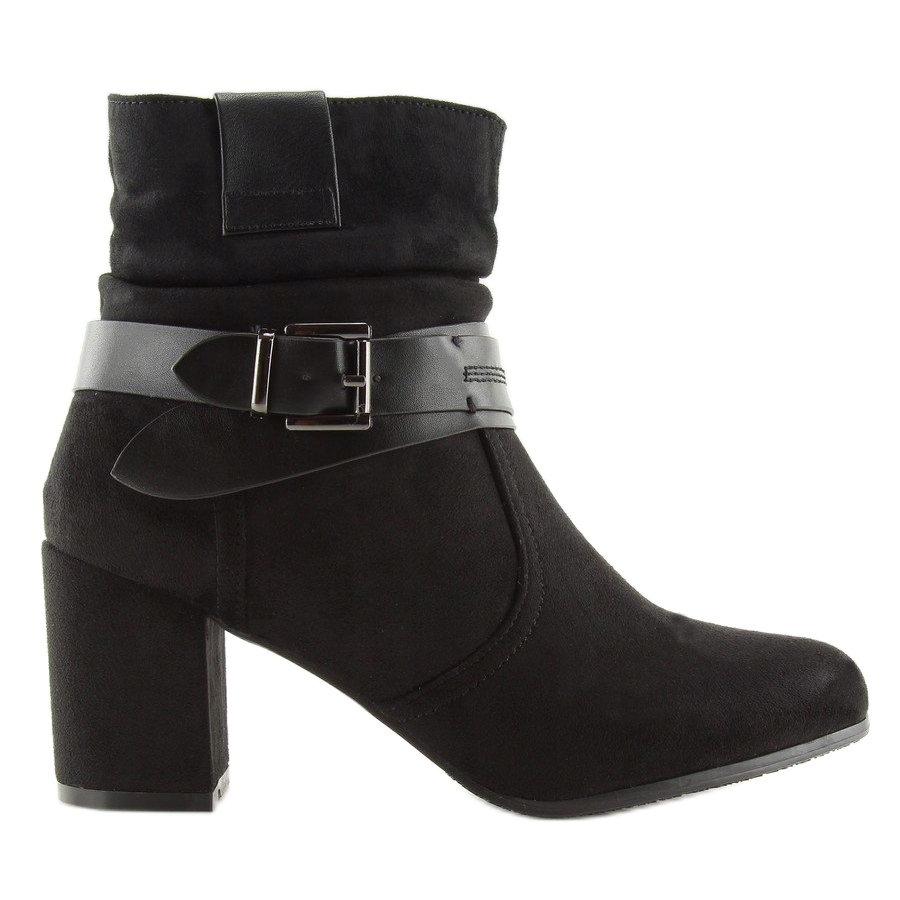 Discover elegance and comfort in the form of 99-129 Black heeled ankle boots! These stylish women's ankle boots are a perfect combination of classic and modern. Made of high-quality ecological suede, they are characterized by a fashionably ruffled upper and graceful straps that subtly wrap around the ankle, adding lightness to the entire styling.