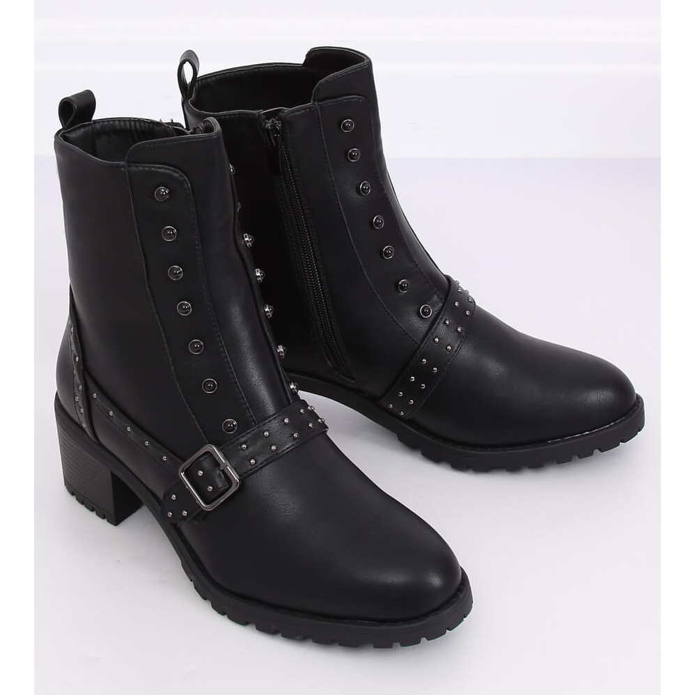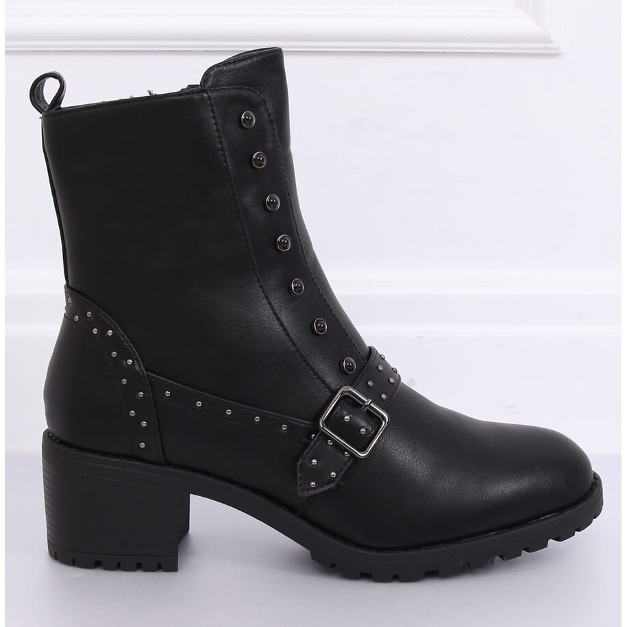 Black high-heeled boots 1003-1 are a combination of military accents with a rock character. A stable, 6 cm heel and a thicker, trapperated sole guarantee comfort and a certain step, and decorative studs and black stones give the shoes a distinct style. Practical zip fastener makes it easier to put on quickly, the interior is lined with delicate fur, which increases the comfort of wearing on cooler days. Made of ecological leather - stylish and easy to care for.