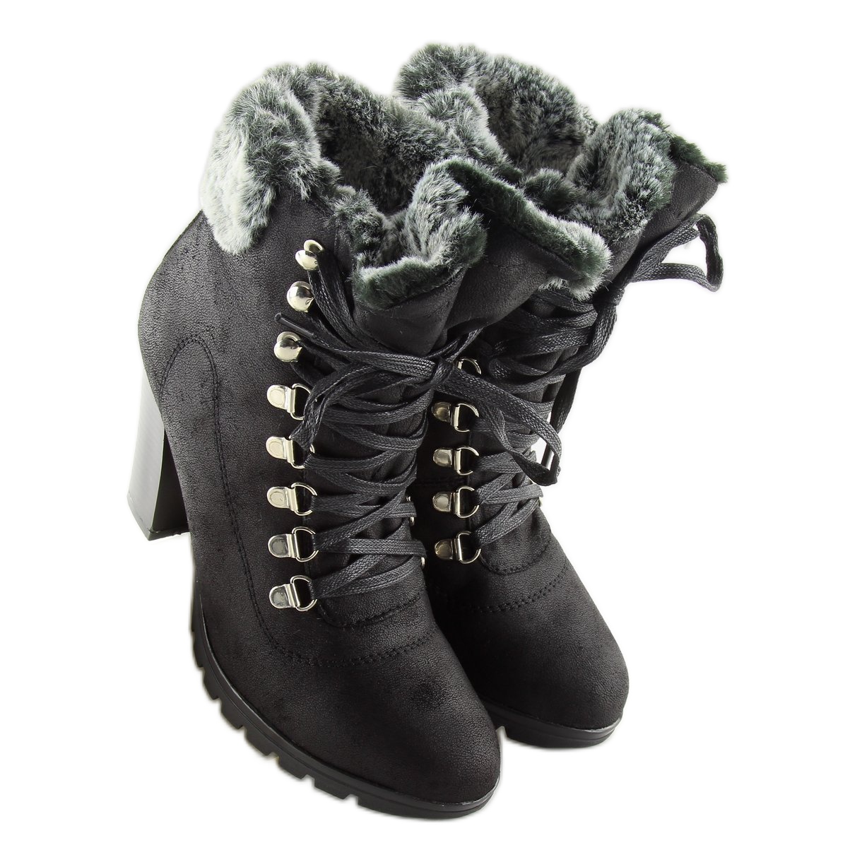 Discover elegance and comfort with the N501 Black ankle boots, which will certainly become a key element of your wardrobe. These women's lace-up ankle boots, inspired by the timberk style, combine comfort and modern design. With a high 9.5 cm heel and a 2 cm thick trapezoidal sole, they offer not only an attractive appearance, but also stability when walking.