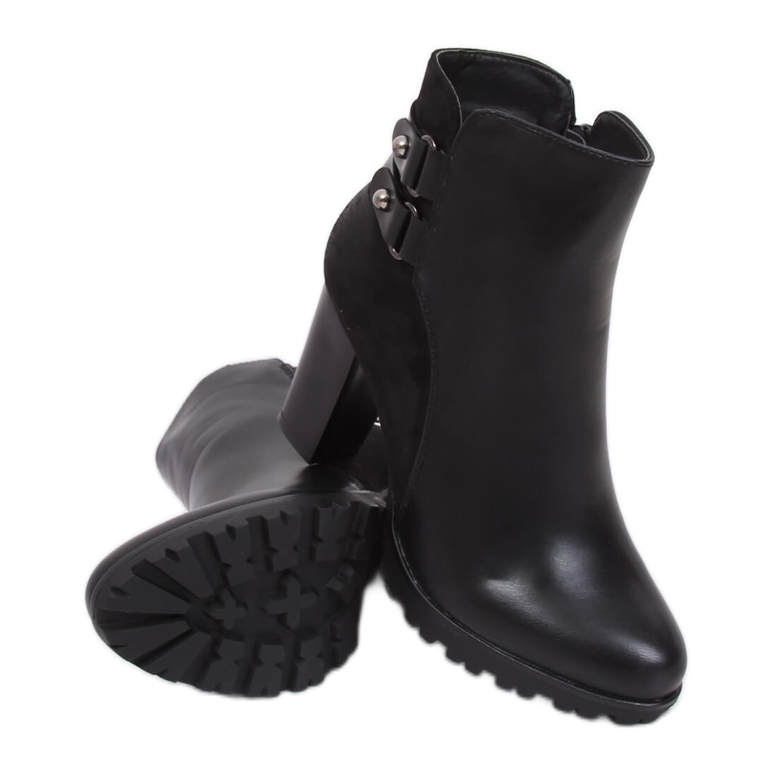 We present elegant Z182 Black high-heeled ankle boots – a must-have in every woman's wardrobe. These charming ankle boots in classic black combine both fashionable design and practicality. Made of eco-suede and eco-leather, they look extremely stylish, and their feminine cut adds chic to any styling.