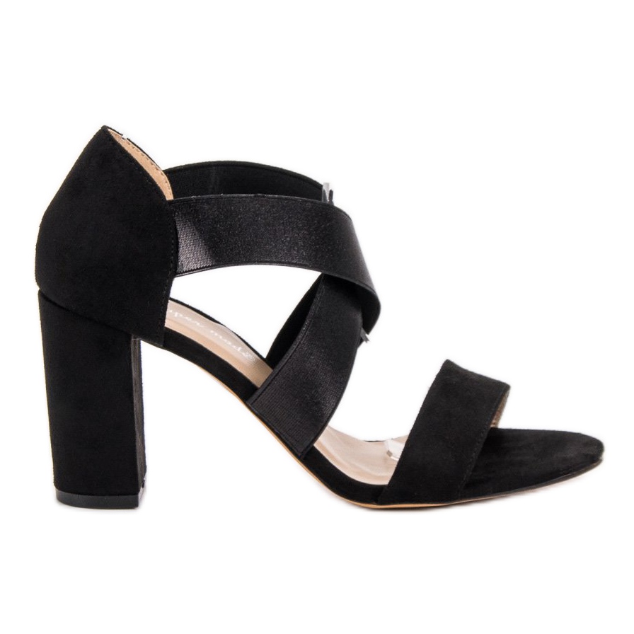 The high 8 cm heel adds elegance, and the classic design means you can wear them for both everyday and more sophisticated styles. The fashionable black color makes the sandals easy to match to various outfits, and the lack of a toe emphasizes their lightness and look at modern fashion trends.