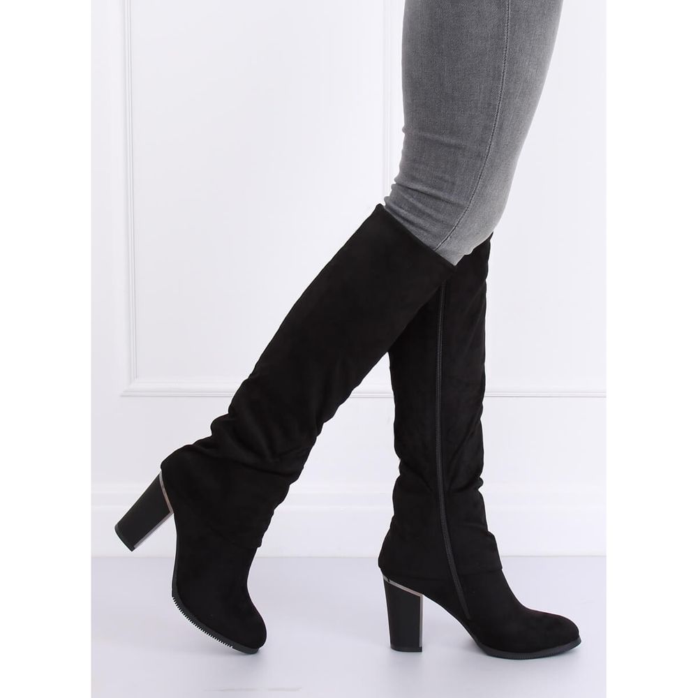 Discover unique style and comfort with the black 1103-GG Black high heel boots. These elegant women's shoes feature a fashionably ruffled upper that attracts attention and adds character to any styling. The stable 9 cm heel, in a matte finish, not only effectively lengthens the silhouette, but also ensures comfort when worn.